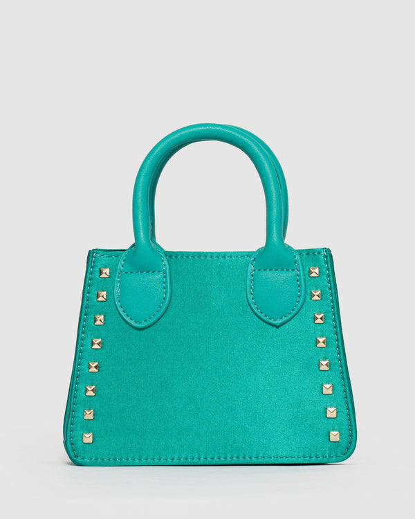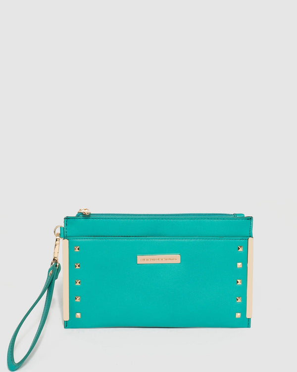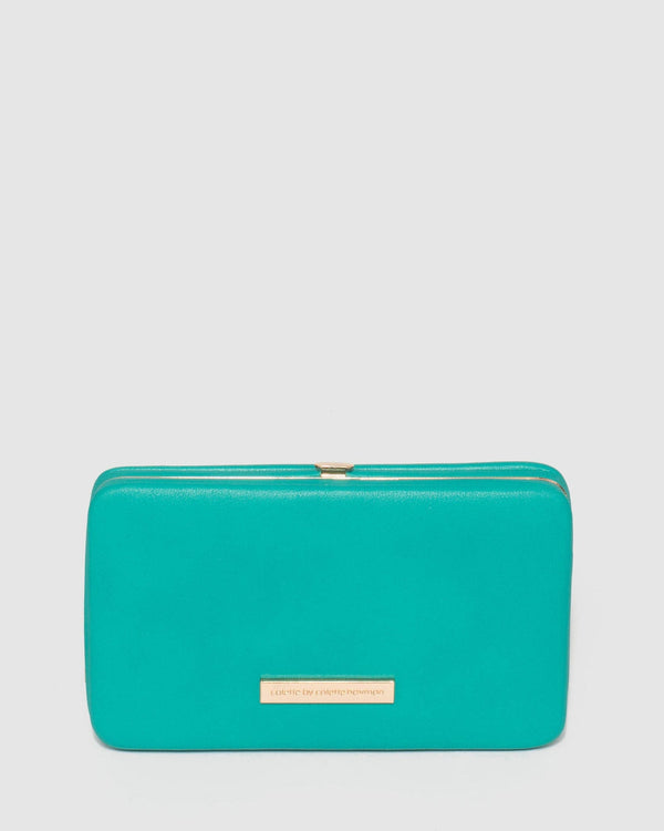 Part of our La Dolce Vita collection Aqua finish with gold tone hardware Textured faux leather Magnetic closure Internal slip pocket Detachable shoulder strap Black lining with colette by colette...