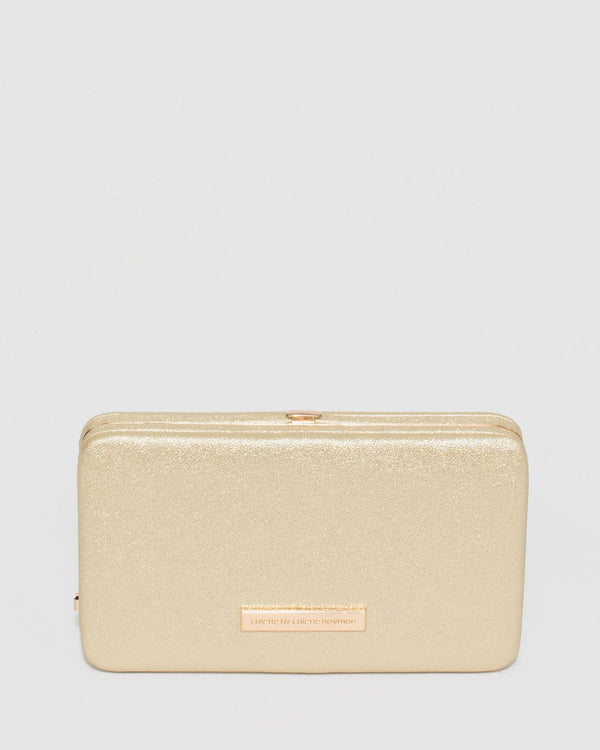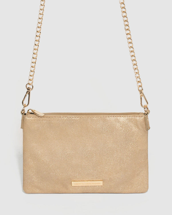 Part of our Heavy Gold collection Gold finish with gold tone hardware Faux suede with glitter print Magnetic closure Internal slip pocket Detachable chain shoulder strap Ivory lining with colette by...