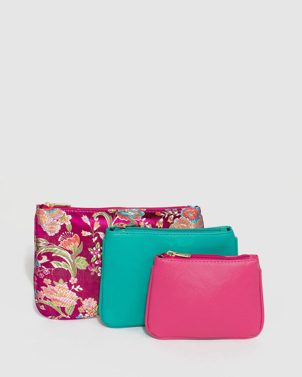 Part of our La Dolce Vita collection Multi colour finish with gold tone hardware Multi textured faux leather and satin look fabric finish Zip closure Set of 3 purses wrapped...