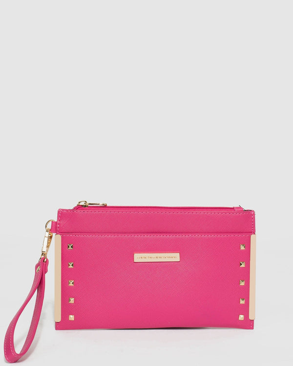 Part of our La Dolce Vita collection Pink finish with gold tone hardware Textured faux leather Magnetic closure Internal slip pocket Detachable shoulder strap Black lining with colette by colette...