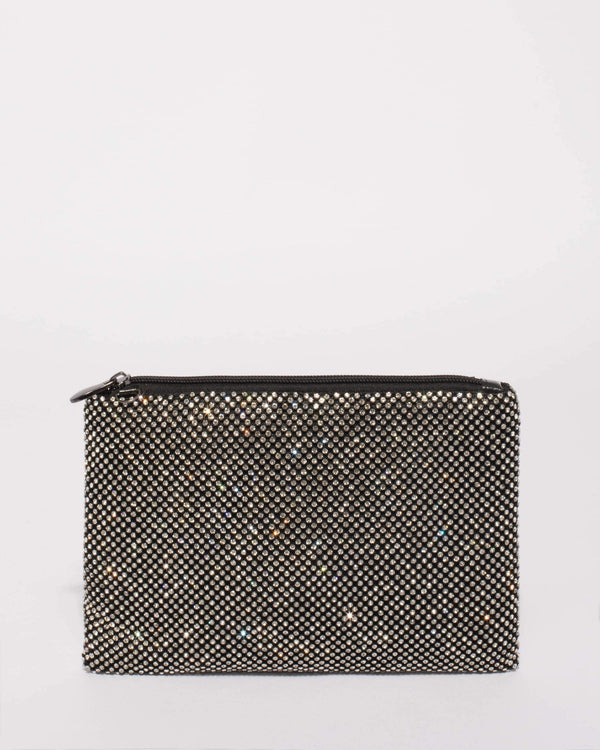 Part of our Dark Sparkle collection Black finish with gunmetal tone hardware Diamante chainmail textured pu material Zip secures main compartment Internal zipped with slip pocket Detachable chain shoulder strap Black...