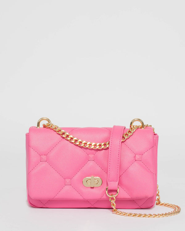 Part of our Malibu Babe collection Vegan leather Pink finish with gold tone hardware Magnetic closure Internal slip pocket Detachable chain shouder strap Black nylon lining with colette by colette hayman...