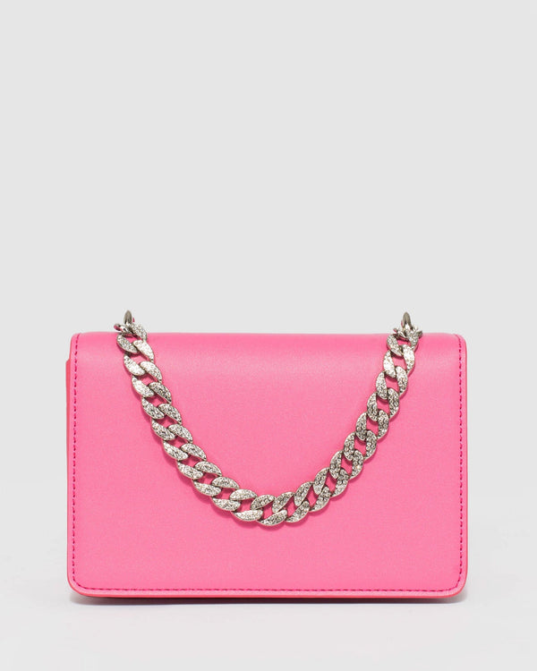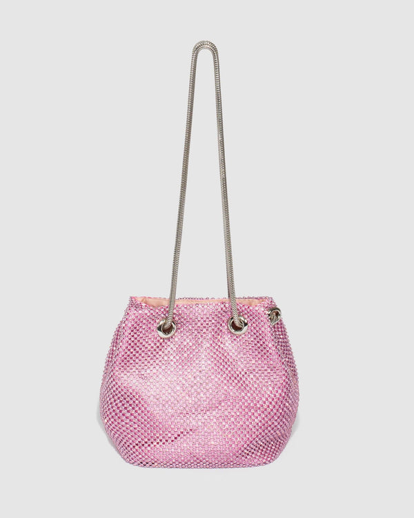 Part of our Malibu Babe collection Pink finish with silver tone hardware Diamante glow mesh finish Magnetic closure Internal zipped pocket Detachable chain shoulder strap Black lining with colette by colette hayman branding Measurements:H15cm...