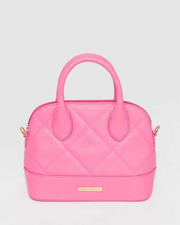 Part of our Malibu Babe collection Vegan leather Pink finish with gold tone hardware Turn lock closure Internal slip and zip pockets Fixed shoulder strap, can be worn multiple ways...