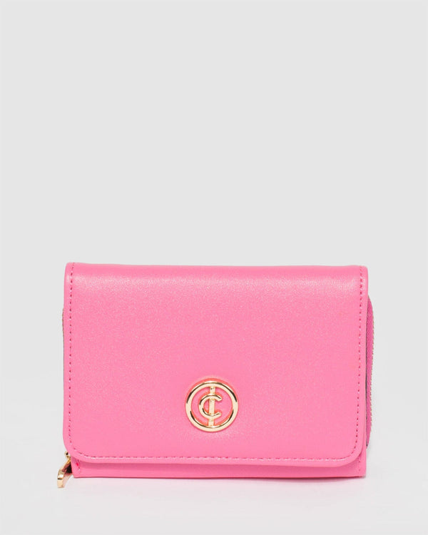 Part of our Malibu Babe collection Pink finish vegan leather Gold tone hardware Press stud closure 4 Internal card slots Clear photo ID window Slip/note slot Zipped coin compartment Black...