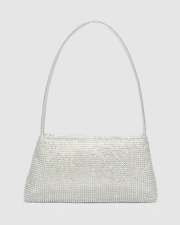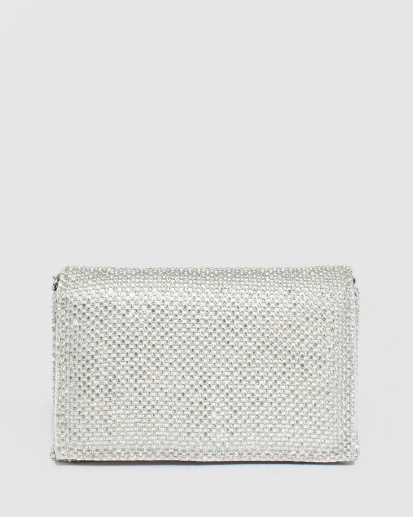 Part of our Diamond Dust collection Silver finish with silver tone hardware Diamante glow mesh finish Magnetic closure Internal zipped pocket Detachable chain shoulder strap Black lining with colette by colette hayman branding Measurements:H15cm...