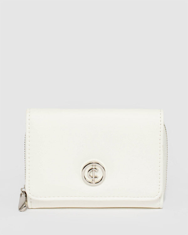 Part of our Malibu Babe collection White finish vegan leather Silver tone hardware Press stud closure 4 Internal card slots Clear photo ID window Slip/note slot Zipped coin compartment White...