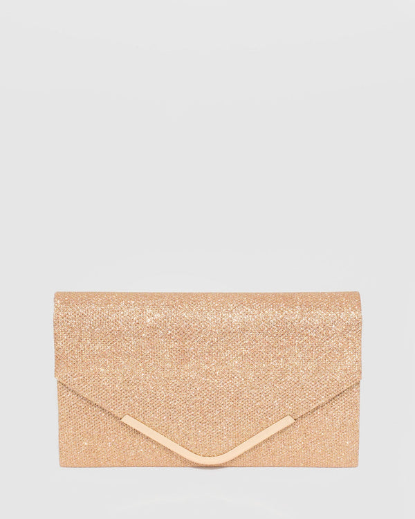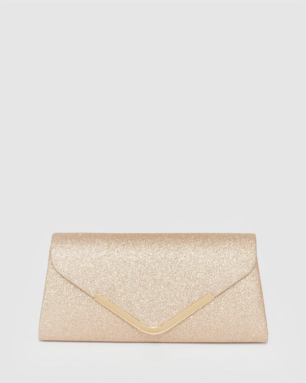 Part of our Night Sky collection Gold glitter finish with Gold tone hardware Envelope style Press stud closure Internal slip pocket Detachable crossbody chain Ivory lining with colette by colette hayman...