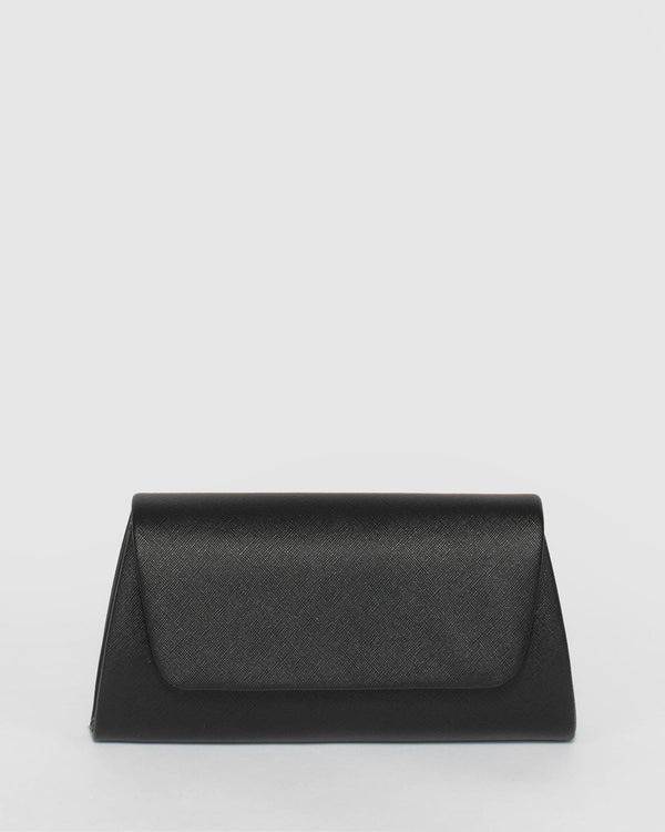 Part of our Midnight Dance collection Black finish with gold tone hardware Saffiano faux leather Magnetic closure Internal slip pocket Detachable chain shoulder strap Black lining with colette by colette...