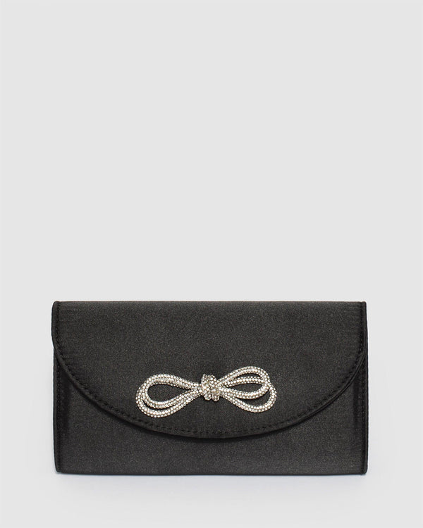 Part of our Midnight Dance collection Black finish with silver tone hardware Satin finish Magnetic closure Internal slip pockets Detachable adjustable shoulder strap Black lining with colette by colette hayman branding  Measurements: L12cm x...