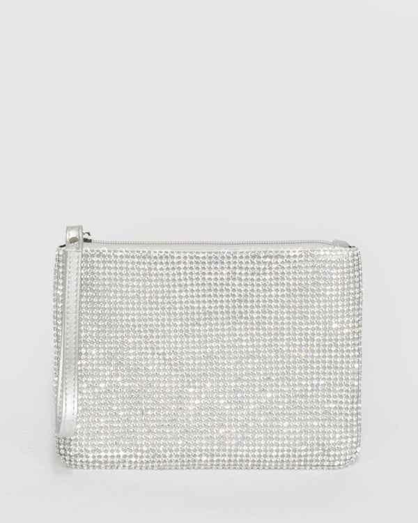 Part of our Stargazer collection Silver finish with silver tone hardware Diamante mesh finish Magnetic closure Internal slip pocket Detachable chain shoulder strap Black lining with colette by colette hayman branding...
