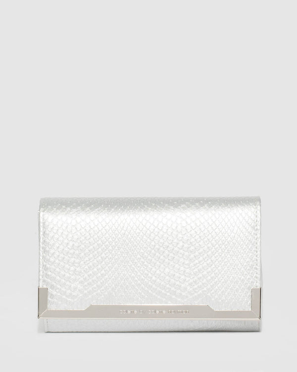 Part of our Midnight Dance collection Silver finish with silver tone hardware Python textured faux leather Magnetic closure Internal slip pocket Detachable chain shoulder strap Black lining with colette by...