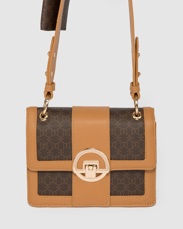 Part of our Choc Monos collection Monogram finish with Gold tone hardware Saffiano textured vegan leather Push lock closure Internal zipped and slip pockets Fixed shoulder strap Detachable purse Purse...