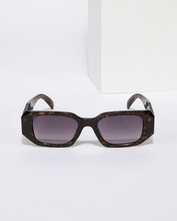 Tortoiseshell Rectangle Thick Framed Sunglasses