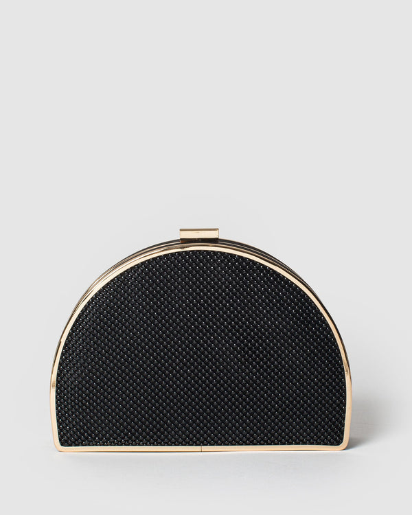 Part of our Clutch Classics collection Black finish in gold tone hardware Saffiano vegan leather Push lock closure Internal slip pocket Detachable chain shoulder strap Black nylon lining with colette...