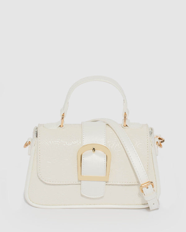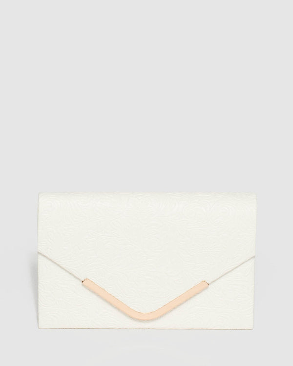 Part of our Paisley Boss collection White finish with gold tone hardware Vegan leather Magnetic closure Detachable adjustable vegan leather shoulder strap Internal zip and slip pockets White lining with colette by...