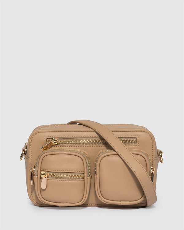 Part of our Perfect Storm collection Light caramel finish with gold tone hardware Vegan leather Frontal and rear zip pockets Side slip pockets Detachable shoulder strap Internal zip and slip pockets...