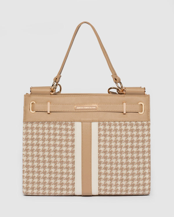 Part of our Perfect Storm collection Light caramel finish with gold tone hardware Vegan leather Detachable shoulder strap Three separate zip compartments Main compartment contains zip and slip pockets Ivory lining...