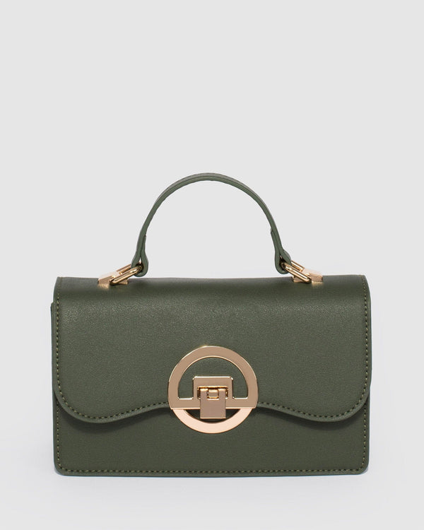 Part of our Refined Nature collection Green finish with gold tone hardware Vegan leather Push lock closure Detachable, adjustable shoulder strap Internal zip pocket Black lining with colette by colette hayman branding...