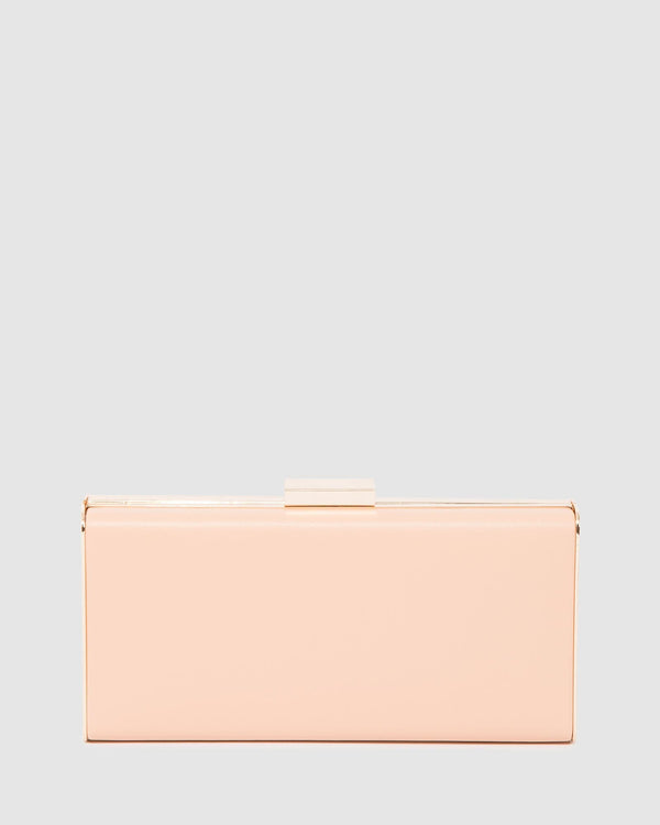 Part of our Rose Gold collection Nude finish with Nickel tone hardware Vegan leather Hardcase Push lock closure Internal slip pocket Detachable crossbody chain Ivory lining with colette by colette...