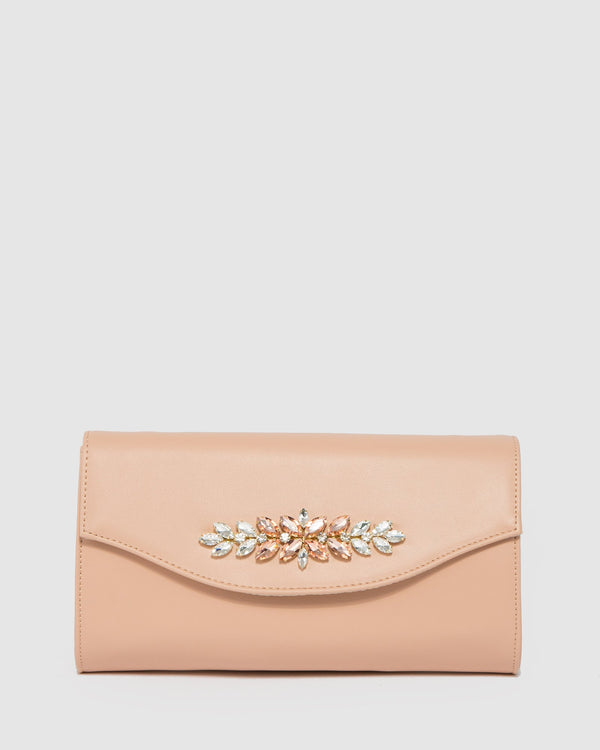 Part of our Rose Gold collection Natural finish with Gold tone hardware Vegan leather Crystal detail Press stud closure Internal slip pocket Detachable crossbody chain Ivory lining with colette by...