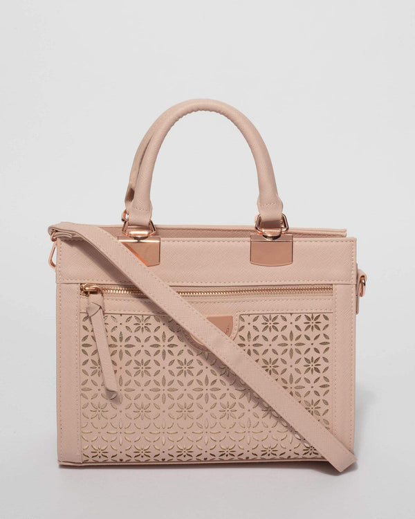 Part of our Roses are Gold collection Pink finish with rose gold tone hardware Saffiano cut out faux leather Zip closure External zip compartment Internal zip, and two slip pockets...
