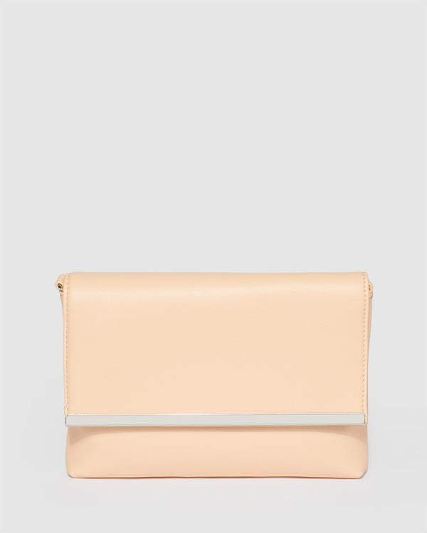 Part of our Rose Gold Mirror collection Rose Gold finish with Gold tone hardware Textured vegan leather Fold over design Press stud closure Internal slip pocket Detachable crossbody chain Ivory...