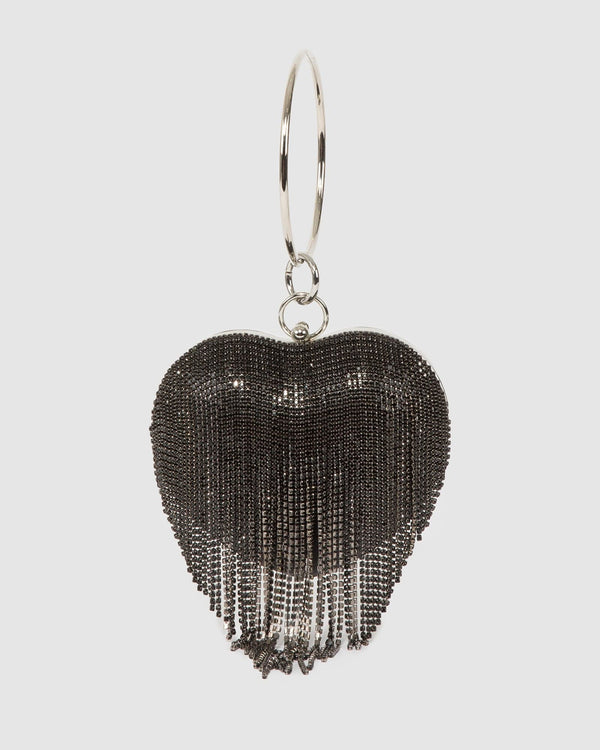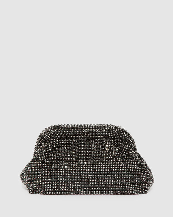 Part of our Clutch Classics collection Silver finish with silver tone hardware Diamante and pu material Push lock clap secures main compartment Internal slip pocket Detachable chain shoulder strap Black...