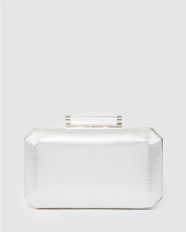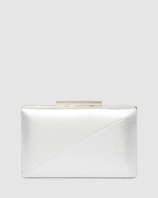 Part of our Clutch Classics collection Silver finish with silver tone hardware Textured glitter material Push lock closure Internal slip pocket Detachable chain shoulder strap Black lining with colette by...
