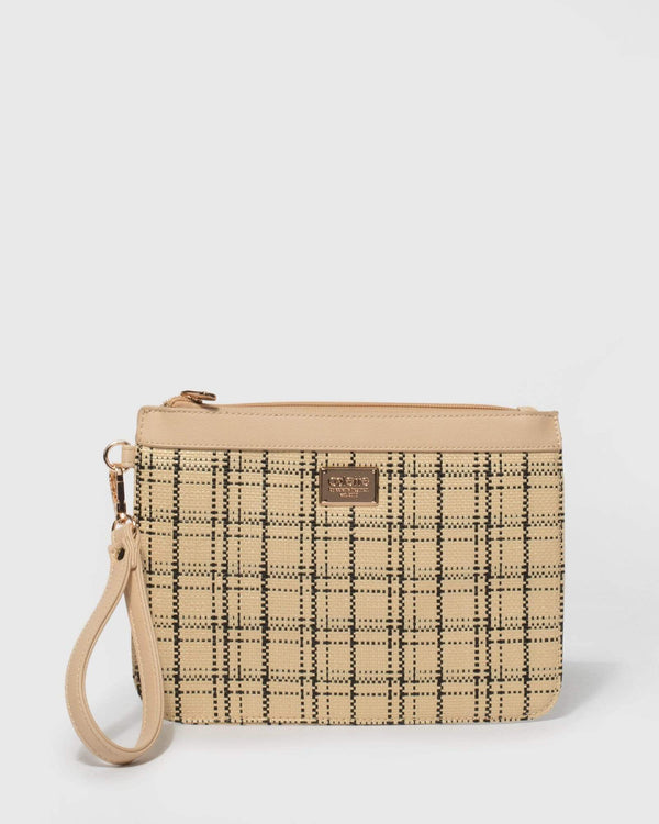 Part of our Summer Roadtrip collection Weave finish with gold tone hardware Zip closure Internal zip and slip pockets Detachable wrist strap Black nylon lining with colette by colette hayman...