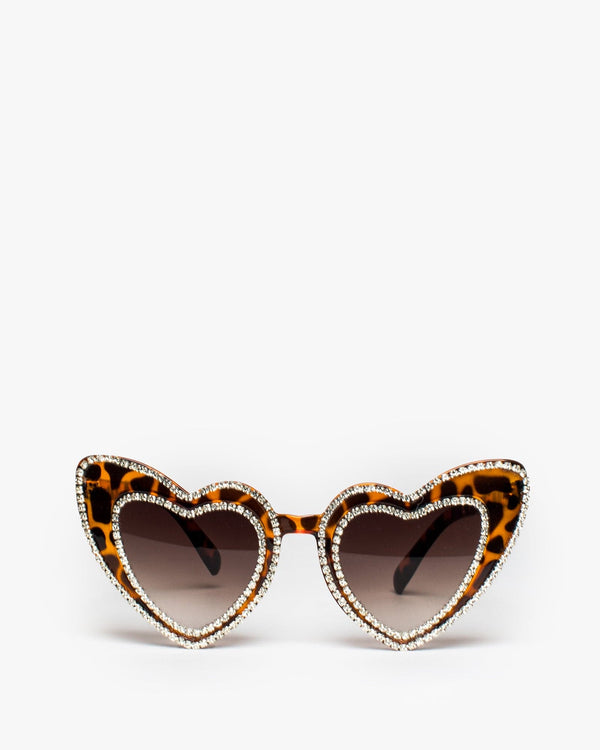 Tortoiseshell Double Rhinestone Heart Sunglasses