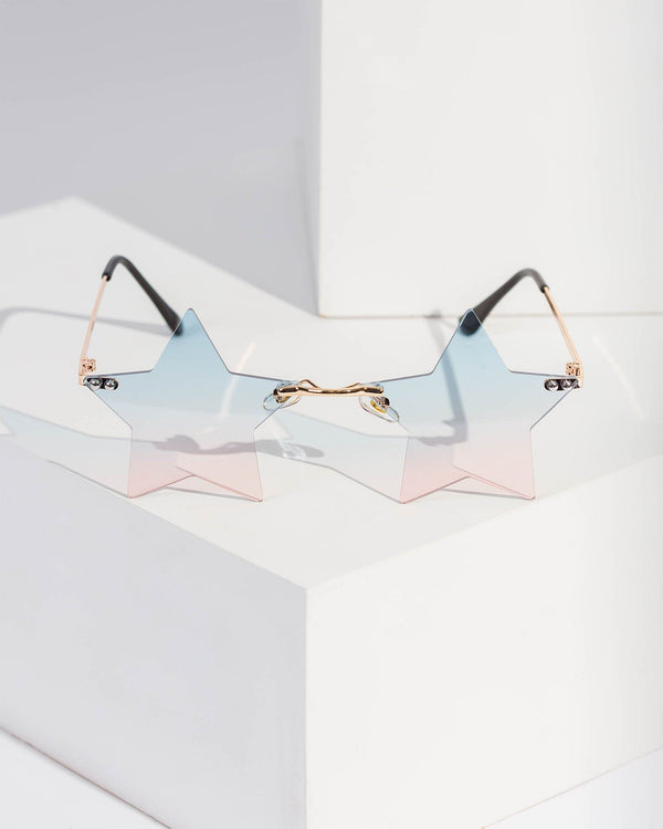 Pink Rimless Wrap Around Star Sunglasses