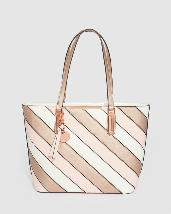 Pink Rose Gold Domi Panel Tote Bag