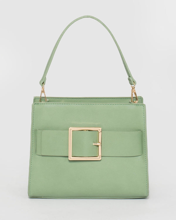 Part of our Spring Into Sage collection Green finish with gold tone hardware Textured faux leather Zip closure Internal zip and slip pockets Detachable adjustable shoulder strap Ivory lining with colette...