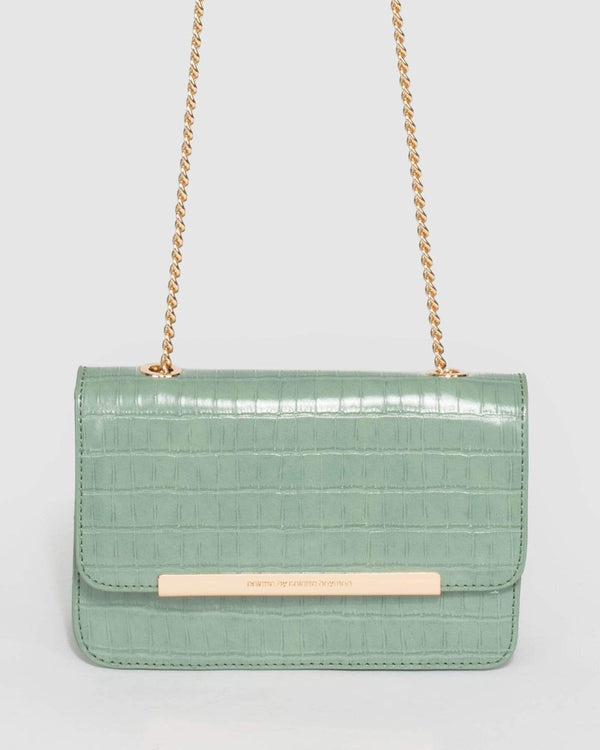 Part of our Lauren collection Green finish with gold tone hardware Faux crocodile material Magnetic closure Internal zipped compartment 2 card slots Fixed shoulder strap Black lining with colette by...