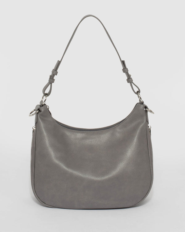 Part of our So Slouchy collection Grey finish with silver tone hardware Smooth faux leather Zip closure Internal zip, slip and mobile phone pockets Detachable adjustable shoulder strap Side zips...