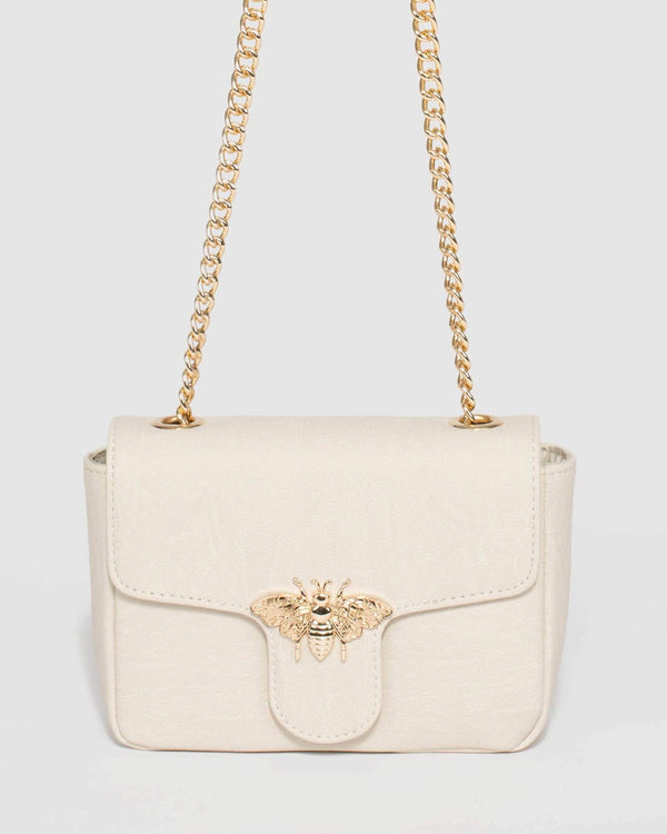 Part of our Bee Hive collection Ivory finish with gold tone hardware Textured vegan leather Magnetic closure Internal zipped pocket Fixed chain shoulder strap Ivory lining with colette by colette hayman...