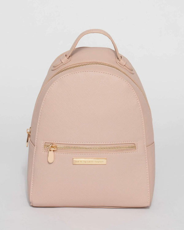 Part of our Mini Backpack collection Pink finish with gold tone hardware Saffiano faux leather Zip closure External zipped compartment Internal zip and slip compartments Adjustable back shoulder straps Pink...