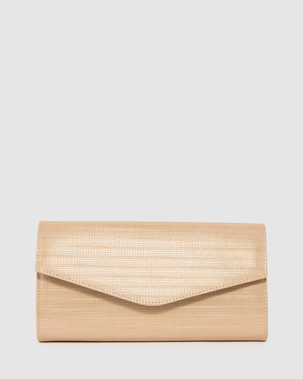 Part of our Clutch Classics collection Black finish in gold tone hardware Saffiano vegan leather Push lock closure Internal slip pocket Detachable chain shoulder strap Black nylon lining with colette...