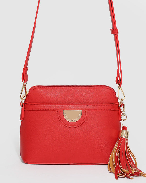 Part of our Think Pink collection Red finish with gold tone hardware Textured faux leather Zip closure External slip pocket on front External zipped pocket on rear Detachable adjustable shoulder...