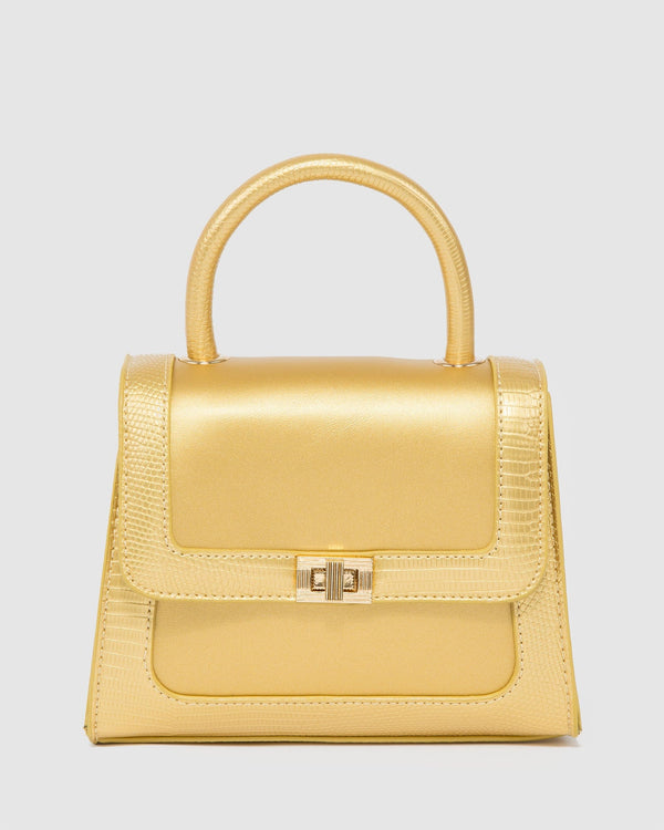 Part of our Berries and Bliss Collection Top handle shape with removable, adjustable crossbody strap included Python print vegan leather material with ivory trims Light gold tone hardware Flip lock...