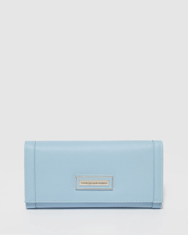 Part of our Purse and Wallet collection Blue finish with silver tone hardware Saffiano faux leather Magnetic dot closure 12 internal card slots with photo id window 5 internal note...
