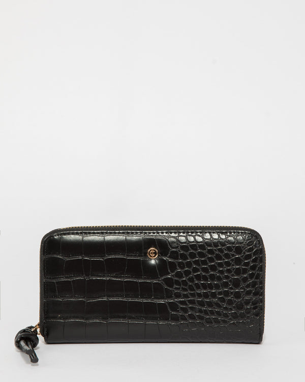 Part of our Astrodust collection Black finish with Gold tone hardware Croc textured vegan leather Zip around design Zipped coin pocket 4 card slots 3 note slots Black lining with...
