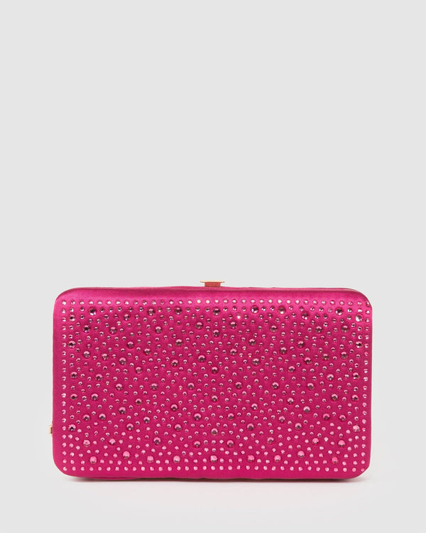 Part of our Bejewelled collection Pink finish with Gold tone hardware Satin finish with crystal details Push lock closure Internal slip and zip pockets 8 credit card slots Elastic phone...