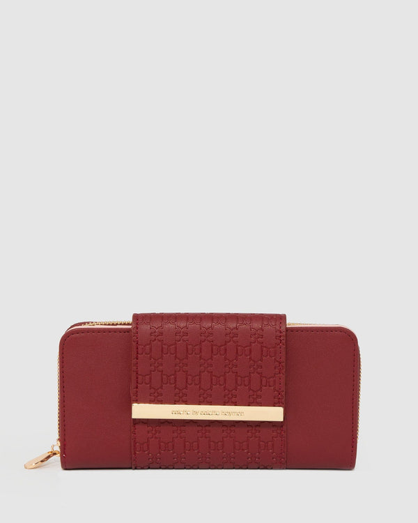 Part of our Mixed Berries collection Red finish with Gold tone hardware Vegan leather Monogrammed detail Press stud closure 16 card slots 2 clear photo ID windows 10 note slots...