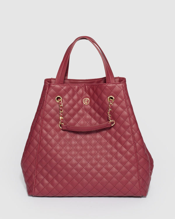 Part of our Winter Berry collection Berry red finish with gold tone hardware Vegan leather Extra chain and vegan leather shoulder straps Internal zip and slip pockets Internal red berry leather taupe lining...