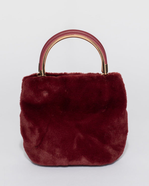 Berry Melis Fur Top Handle Bag