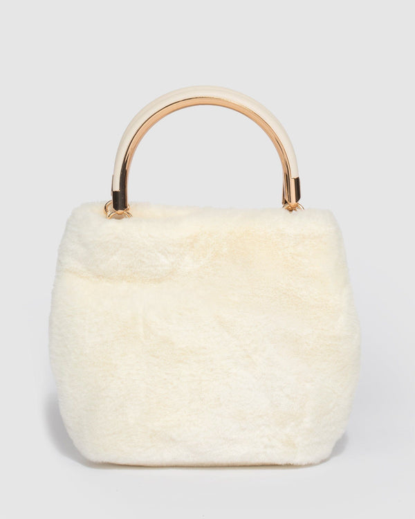 Ivory Melis Fur Top Handle Bag