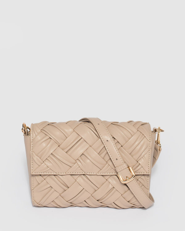 Taupe Jehanna Weave Crossbody Bag