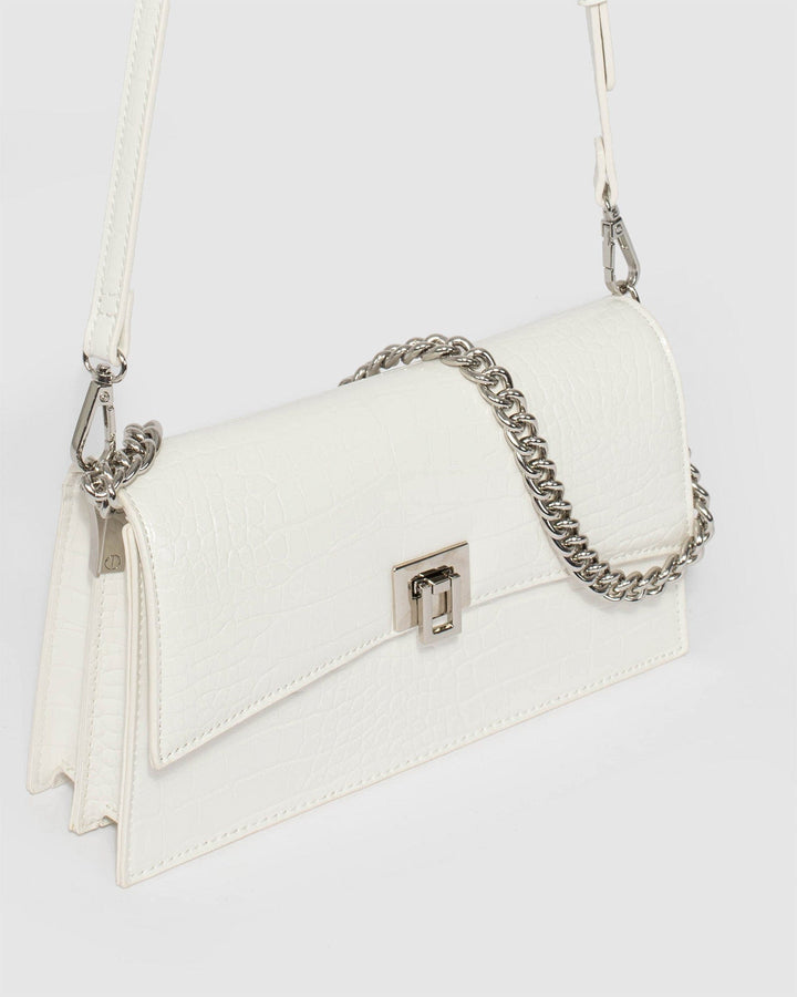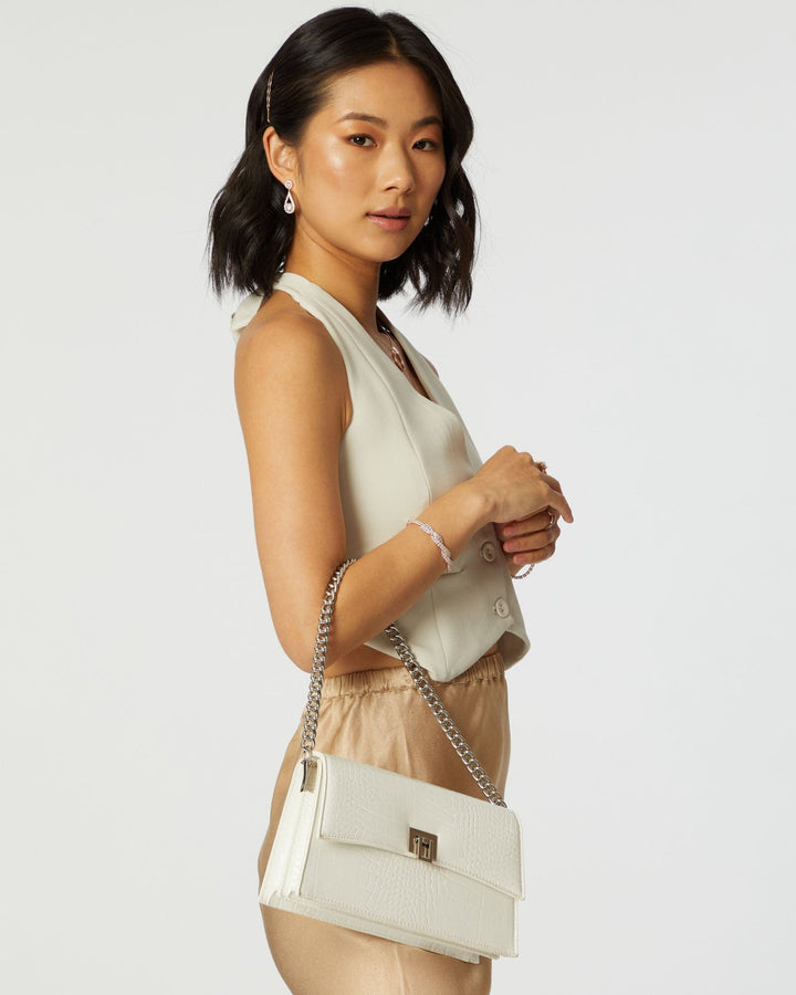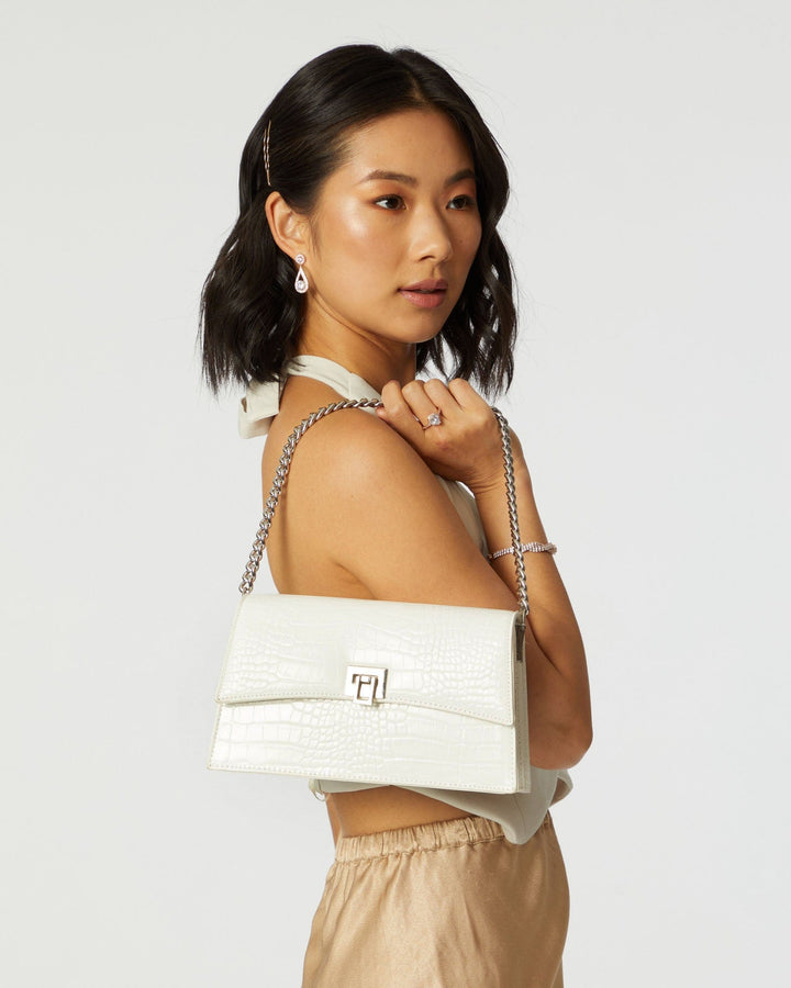 Alana Lock White Shoulder Bag
